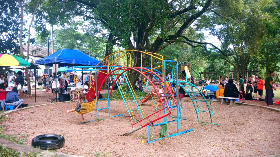시끄럽던 음악 소리가 잦아들자, 흙냄새와 풀 냄새가 코끝을 스쳤다. 마켓의 소란스러움이 기분 좋은 활기로 바뀌는 곳, 그 공원은 또 다른 매력의 평화로운 세상이었다.