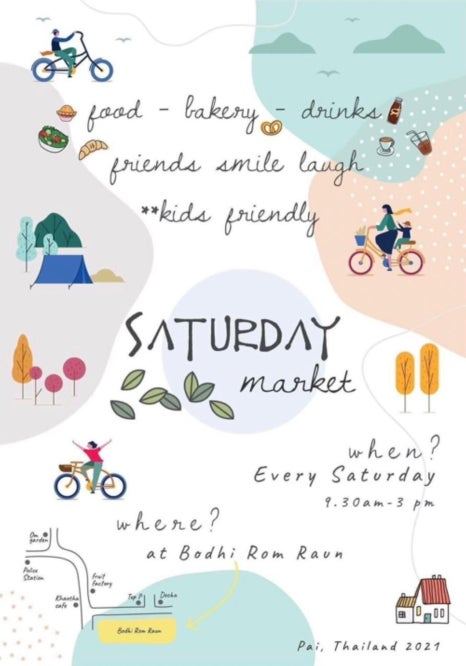 빠이의 토요마켓이 내게는 그랬다. 매일 밤 열리는 야시장과 달리, 토요일 오전에만 잠깐 열리는 이 시장의 존재를 나는 까맣게 모르고 있었다. 금요일 저녁, 숙소 사장님께서 "내일 이런 마켓이 열리는데, 같이 가볼래요?"라며 아기자기한 포스터 한 장을 보내주지 않았다면 아마 영영 스쳐 지나갔을지도 모른다.