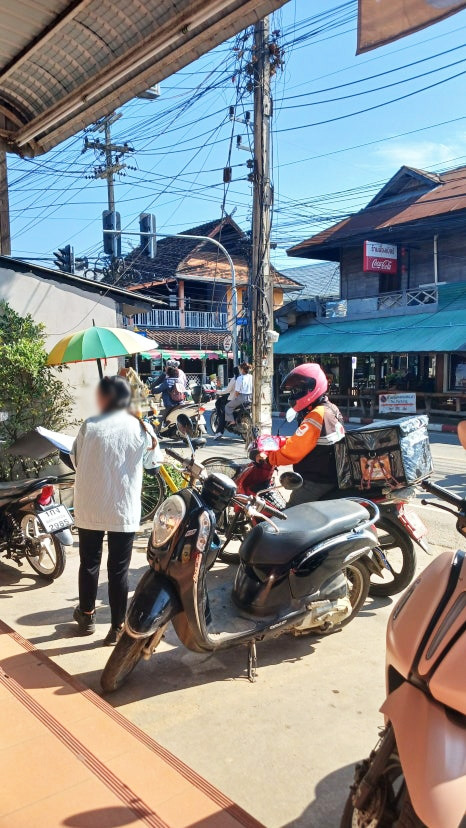 편의점이라는 일상적인 공간과, 그곳을 안방처럼 차지하고 자는 커다란 개. 어쩌면 가장 어울리지 않는 이 조합이야말로, 내가 빠이에서 본 가장 평화로운 장면이었을지도 모른다.