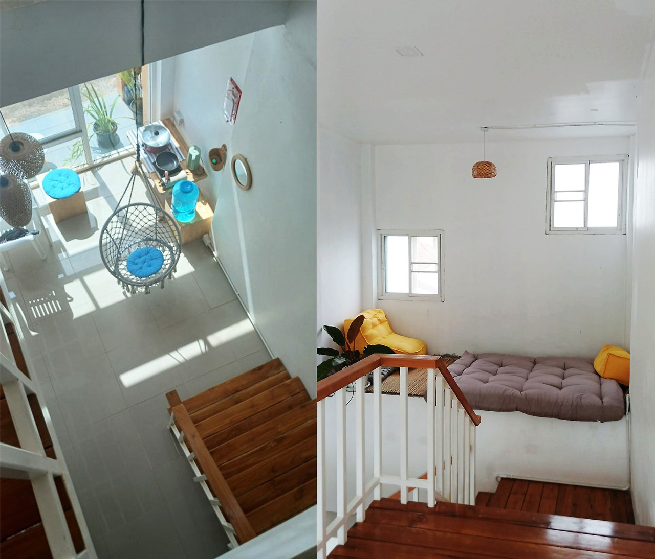 ▸ 1.5층 : 푹신한 토퍼와 쿠션이 있는 아늑한 휴식 공간.