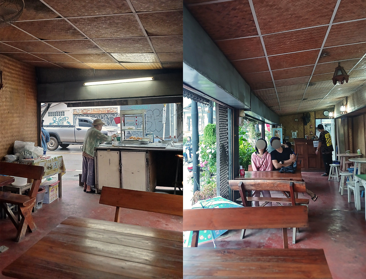 우리는 천막 대신 근처의 다른 식당 안으로 들어갔다. 외부 자리가 넉넉지 않고 비가 오니 조금 더 편한 곳에서 먹게 하려는 숙소 사장님 부부의 배려였다.