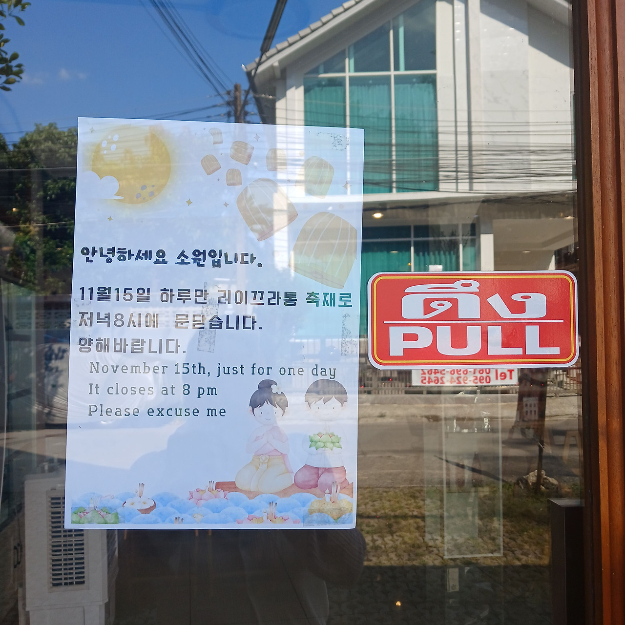 이곳은 원님만 근처 숙소에서 만난 한국인 언니가 적극 추천해 준 곳이었다. 메뉴판을 펼치자마자 고민할 겨를도 없었다. 언니가 일러준 대로 떡만둣국과 김밥을 선택했다. 혼자 먹기엔 다소 벅찬 양이었지만, 이번 여행에서 맛보는 첫 한식인 만큼 내 위장을 믿어보기로 했다.