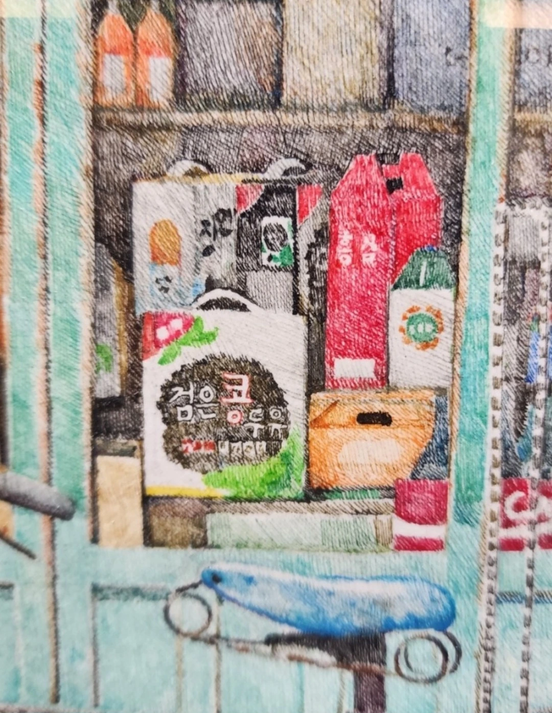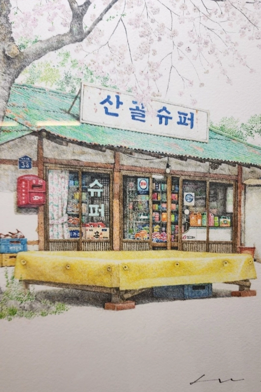 <즐기는 베짱이 놀이터> 블로그에서 가저온 이미경 화가의 그림 이 작가의 그림은 추억을 소환한고 아련한 감성을 불러일으킨다. 작가는 한 구멍가게의 풍경을 봄, 여름, 가을, 겨울 사계절로 표현하기도 했다. 그림 속의 작은 디테일들을 감상하는 기쁨도 크다. 화려한 대형마트가 대세가 되고 코로나 이후엔 인터넷으로 주문하면 바로 문 앞까지 배달되는 편한 시대지만 참새 방앗간 드나들 듯 드나들던 구멍가게의 추억이 누구에게나 있을 것이다. 돈 10원만 생겨도 찾아가 하드나 쫀드기 같은 간식을 사 먹던 곳. 아직 희미하게 남아있는 그런 구멍가게들을 찾아 그림으로 구현해 낸 작품들이 너무 아름답고 좋았다.