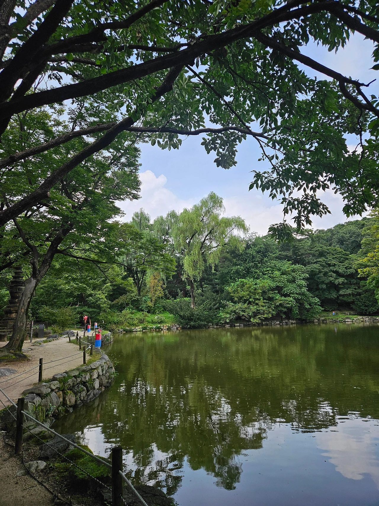 창경궁은 과거 일제가 우리나라 왕실의 위엄을 훼손하기 위해 창경원으로 만들어 일반인들에게 공개했다고 들었다. 동물원 및 유원지의 역할을 했어 선지 궁궐의 느낌보다는 산책하기 좋은 아름다운 정원 같았다. 신비롭고 아름다운 숲길을 걷다 보니 춘당지라는 연못이 나왔다. 물은 맑지 않았지만 잉어들이 살고 있었고 주변 풍경이 너무 아름다웠다. 남편하고 이 근처로 이사 와서 천 원의 입장료를 내더라도 매일 와서 산책하고 싶다고 이야기했다.