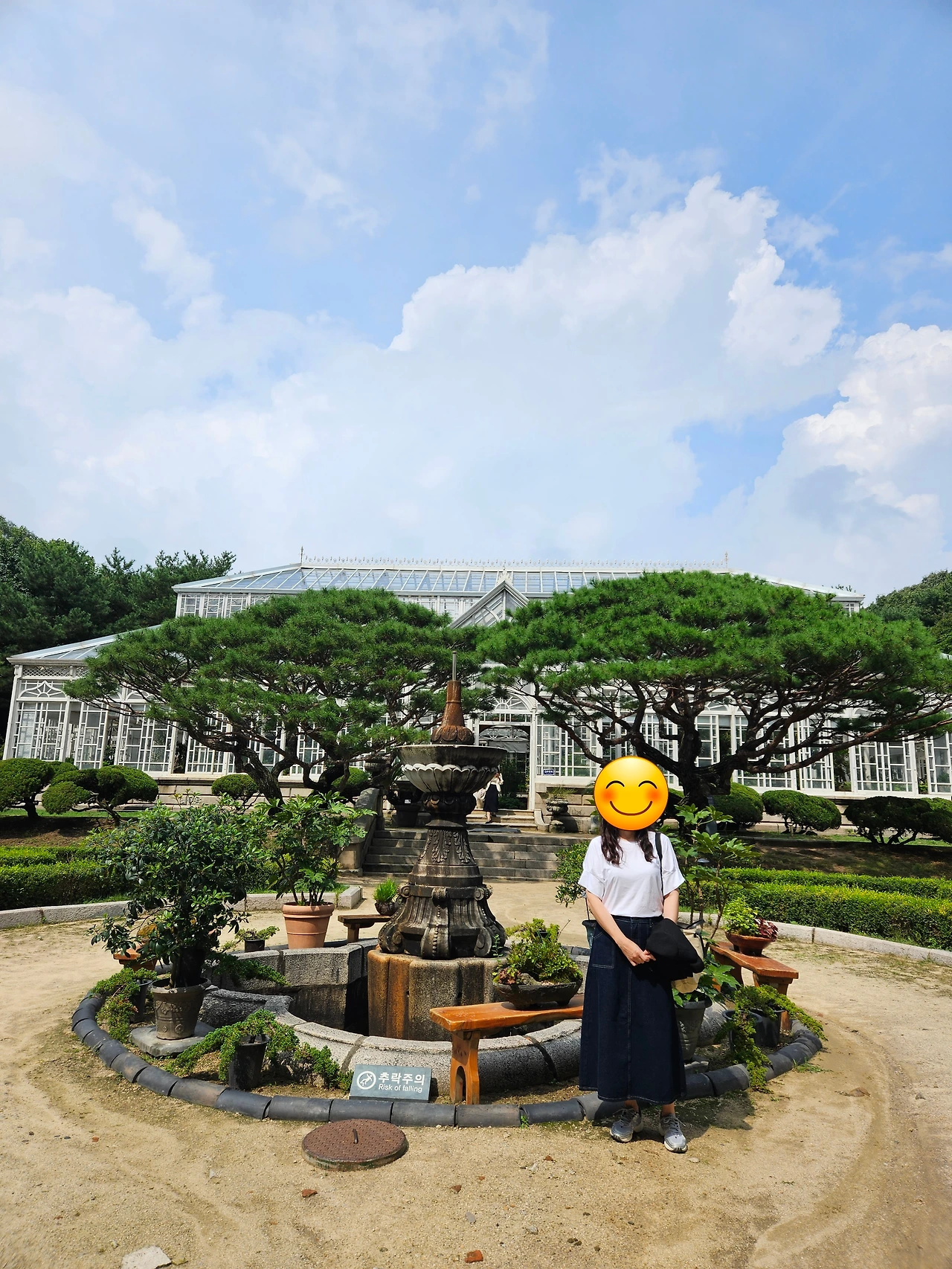 감탄하며 즐겁게 걷다 보니 드디어 그 장소, 어릴 적 사진 속에 있던 창경궁 대온실 앞에 도착했다. 일제 강점기에 지어진 대한민국 최초의 근대식 온실화원이라고 한다. 일제가 안 좋은 의도로 지었다지만 정말 예쁜 온실이었다. 온실 앞에 있는 구조물까지 사진 속에 있던 그대로였다.