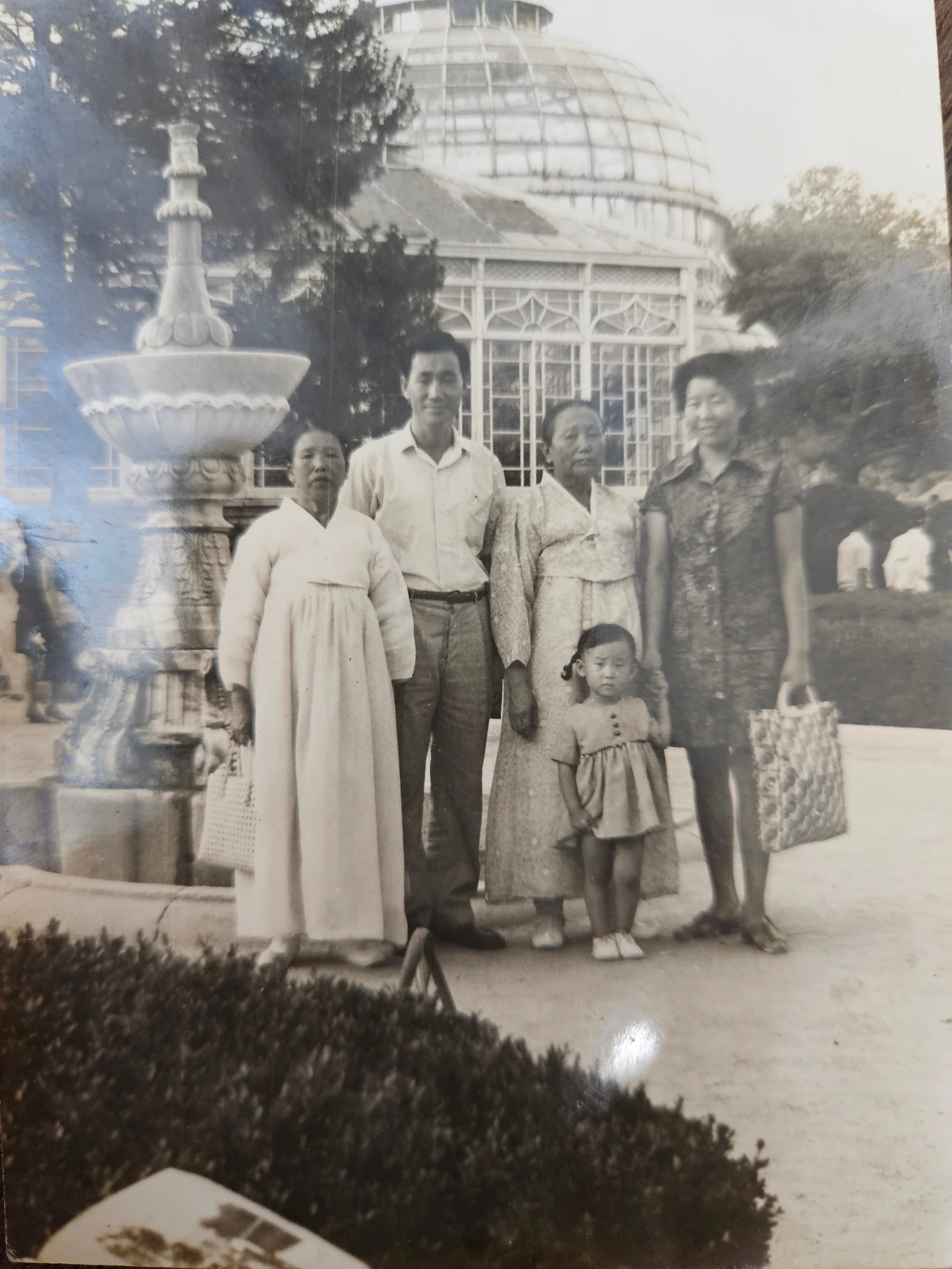 어제 창경궁에 다녀와서 예전 사진을 찾아보았다. 대온실 앞에 있는 구조물에서 찍은 사진과 똑같은 구도의 사진을 찾았다. 거기에는 우리 할머니와 엄마, 아빠가 너무나도 젊은 모습으로 있었고 어린 내가 원피스를 입고 개구진 표정으로 서 있었다.