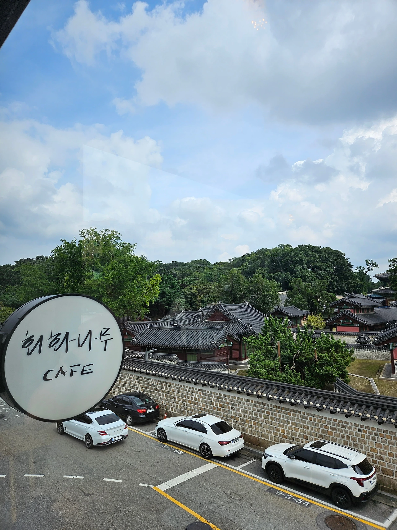 소극적이고 취미도 별로 없는 남편이지만 먹는 거에는 적극적이라 주변 카페도 검색해 보더니 창덕궁 근처에 가자고 했다. 일요일인데도 창덕궁 담장 주변에 주차할 곳이 있었다. 회화나무라는 카페다. 카페에 앉아있으면 창덕궁이 다 내려다보이는 뷰가 무척 좋은 카페였다. 그전에도 와 봤는데 주인이 바뀌었는지 인테리어가 달라져 있었다.