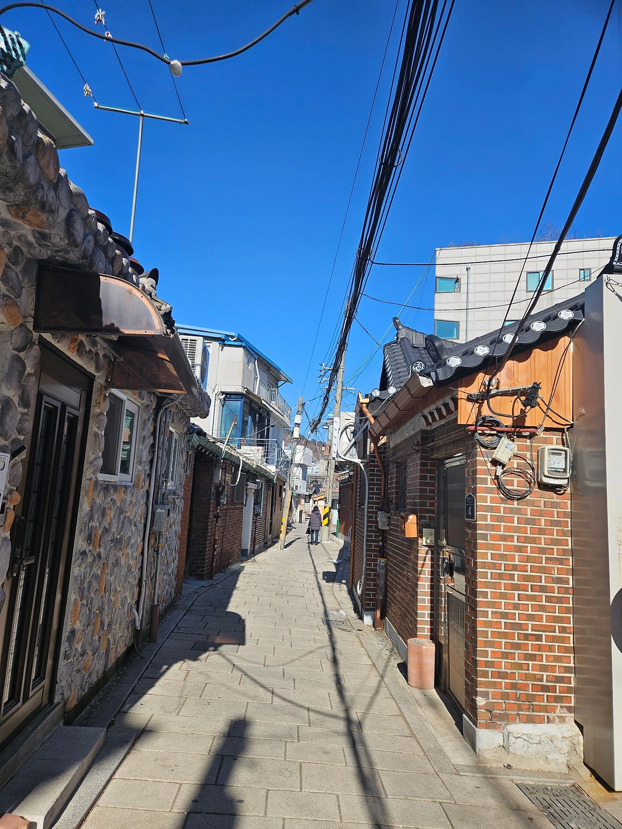 버스는 용산을 지나고 시청을 지나 나를 내려주었다. 마을버스로 갈아타고 통인시장에 내리니 필운대로였다. 서촌 뒤쪽 길인 거 같았다. 필운대로 5길이라고 쓰인 표지판 주위를 여기저기 살펴봤지만 크지 않았고 생각보다 볼게 많지는 않았다. 내가 잘못 왔나 싶어 앞으로도 가보고 뒤쪽으로 다시 가 봐도 그게 다인 거 같았다. 그래도 그 작은 골목길에도 서촌, 북촌 쪽에서 본 비슷한 집들이 아기자기하게 모여있어 아늑하고 좋았다. 동네가 너무 작아서 아쉬울 뿐이었다.