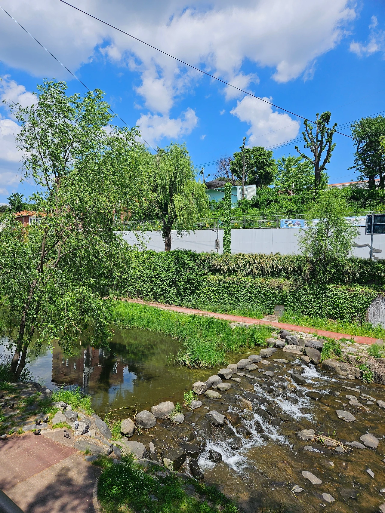 찾아보니 방화수류정 쪽에서 흘러 내려오는 시냇물이 아닌가 싶다. 그쪽으로 더 가보고 싶었지만 이미 2시간 넘게 걸어 다녀서인지 조금 힘들어져서 다음을 기약하고 다시 벽화 마을 쪽으로 돌아 나왔다.