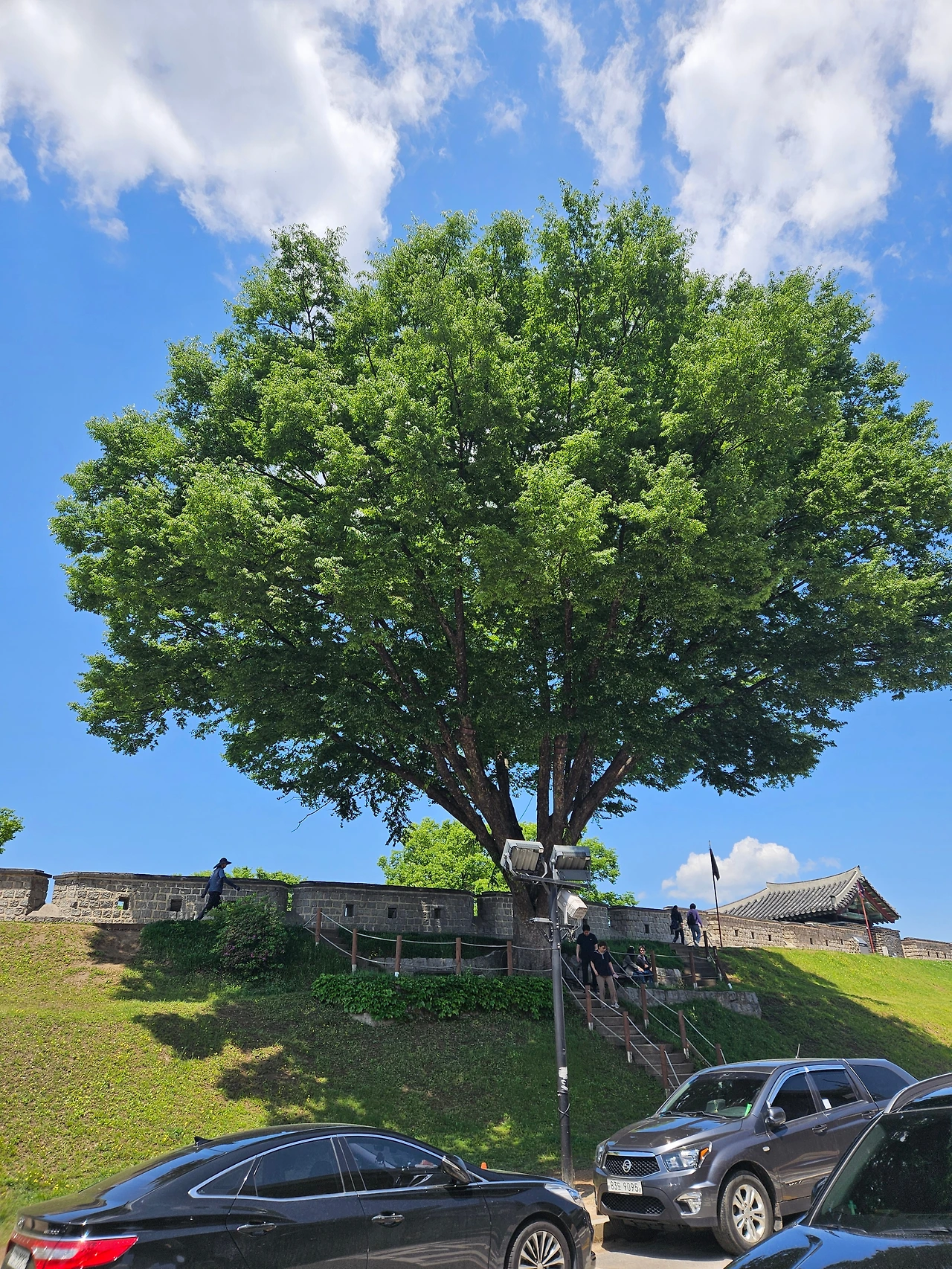 그렇게 가다 보니 수원 화성의 서문인 화서문이 나타났다. 성곽길도 연결되어 있었다. 성곽길로 올라가 걷기보다는 아름다운 성곽길을 보면서 그 옆길을 한 참 따라 걸었다. 걷다 보니 엄청 멋진 나무가 나타났다. 동화나 영화에나 나올법한 나무였다. 그 나무를 오랫동안 눈과 사진에 담았다.