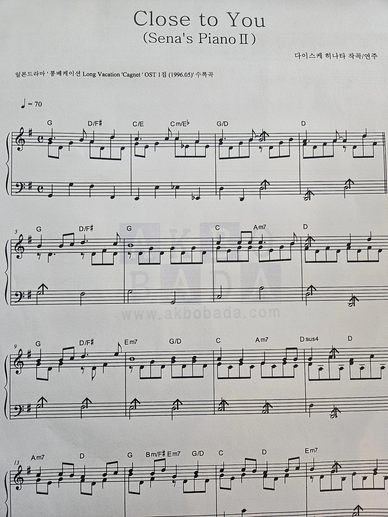 인생의 가장 비참한 시기에 있던 미나미에게 들려준 세나의 피아노가 얼마나 위로가 됐는지를 알려 주기 위해 그 곡을 일주일 만에 연주해 내는 기적을 만들 낸다. 나도 바로 그 곡의 악보를 구했다. 곡은 생각보다 어렵지 않아서 나도 며칠 만에 미나미만큼 치게 되었다.