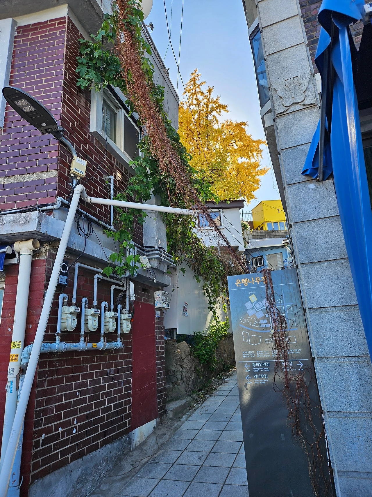작은 골목 사이로 보이는 은행나무가 이곳의 명물인지 표지판까지 만들어 달아 놨는데 아주 작은 골목 사이로 보이는 황금빛으로 빛나는 은행나무의 풍경도 근사했다.