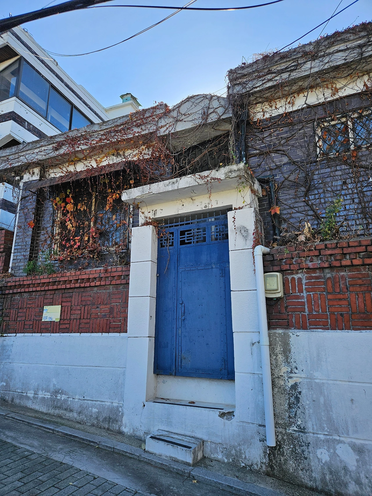 또 걸어가다 만난 파란 대문집도 담쟁이가 푸르러질 봄이나 여름에 다시 와보고 싶은 마음이 들게 만들었다.