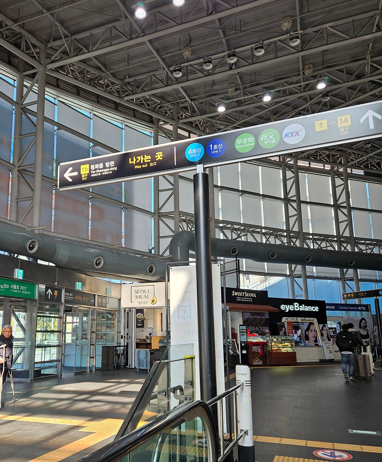 청파동 가는 길을 검색해 봤더니 집에서도 가까웠다. 4호선을 타고 서울역에서 내려 15번 출구로 나가서 길만 건너면 그쪽 일대가 다 청파동이었다. 15번 출구 쪽은 KTX 타는 방향과 같았다. 점심시간이라 기차역에서 혼자 칼국수 만두 세트를 사 먹고 15번 출구 서부역 쪽으로 나갔다.