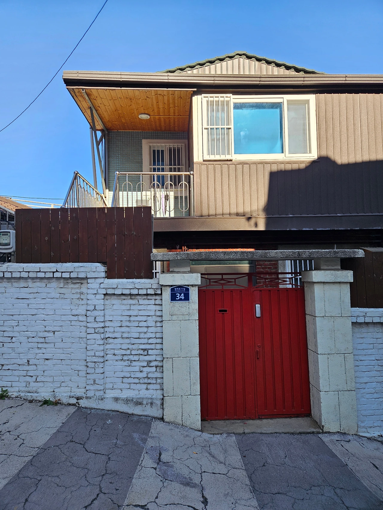 걸어 다니다 보면 우리나라 주택이 맞는지 의심이 들 정도로 독특한 집들이 많았다. 특이한 모양의 대문과 담벼락을 갖은 집도 멋졌고 빨간 대문의 목조건물집도 예뻤다.