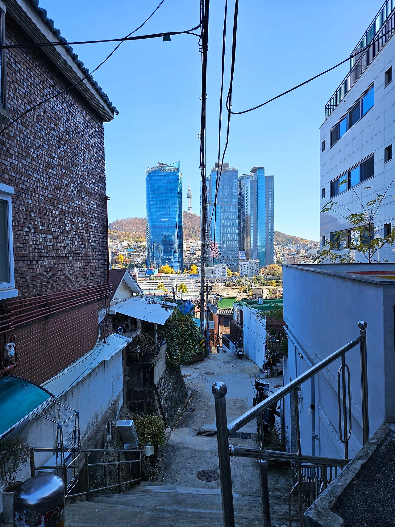 내가 어디로 가고 있는지도 모르는 채 골목길 언덕을 오르고 또 나타나는 옆 골목으로 가다 보니 저 멀리 빌딩 사이로 남산타워가 보이고 서부역에서 기차가 지나가는 풍경이 보이는 집들은 또 얼마나 멋지던지 이곳의 사계절이 궁금해졌다.