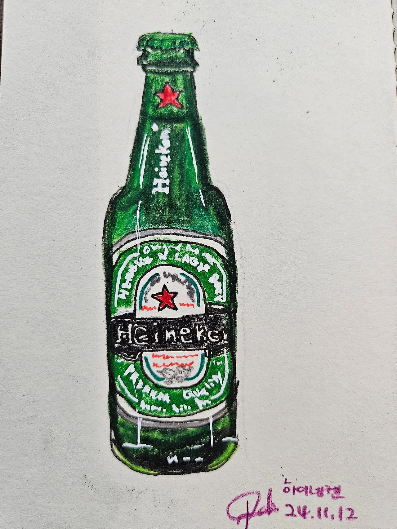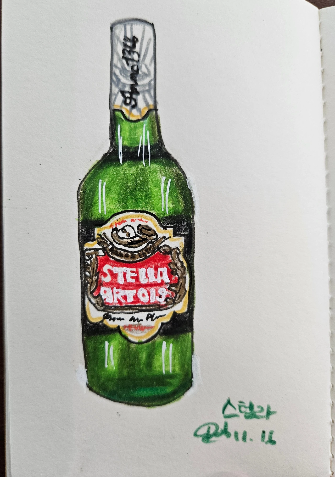 그동안 내가 마셔본 맥주, 마셔보지는 못했지만 병을 보기만 해도 기분이 좋아지는 사진들을 검색해서 그려보았다. 제일 많이 마시고 좋아했던 하이네켄과 카스, 클라우드, 스텔라도 그리고 예쁜 병들을 찾아 그리며 맥주 마시는 시간만큼이나 기분이 좋았다.