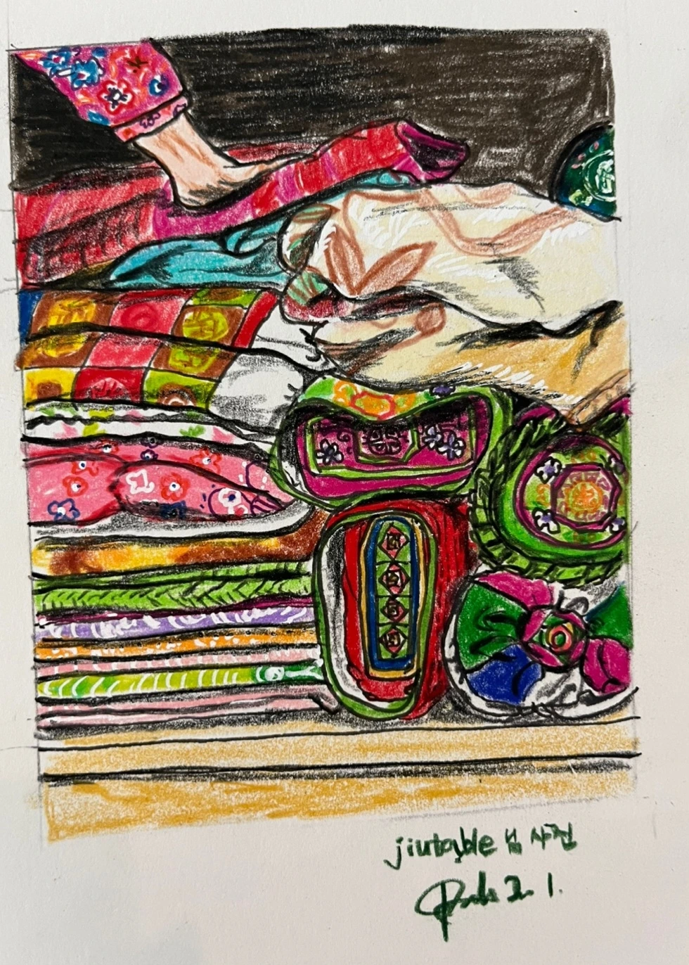그런데 기대하지도 못했던 답장이 왔다. 할머니의 이불장을 손그림으로 그렸다니 감격스럽다고, 프린트해서 가져도 되겠냐고 오히려 나의 허락을 구하는 답장이었다. 아직 내 그림에 의심이 가득하고 사람들이 어떻게 볼지 걱정이었는데 기대 이상의 반응에 얼떨떨했다.