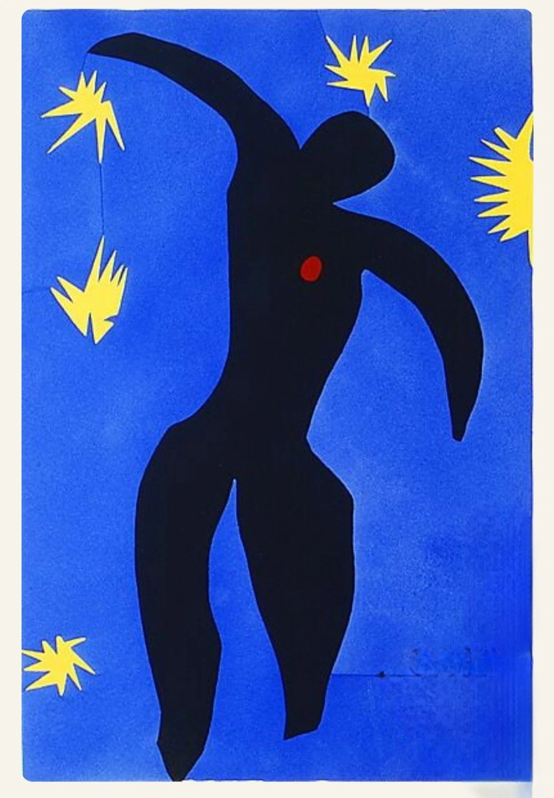 그의 어린아이 같은 작품의 배경에 그런 이유가 있었는지 처음 알게 되었다. 84세에 세상을 떠난 그의 침대 머리맡에는 가위와 색종이가 놓여 있었다고 한다.