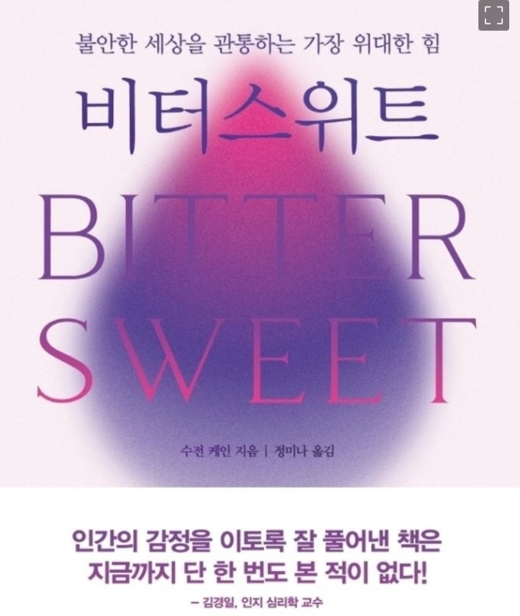 이 책에는 비터스위트 지수를 알아보는 테스트도 있다. 이런 성향에 가까운 사람인지 아닌지 알아보는 것이다. 나는 테스트해본 결과 높은 성향의 비터 스위트 경향의 사람으로 나왔다. 사람마다. 이런 섬세한 감정의 차이, 세상 어디에 더 포커스를 두는 사람인지 다 다른데 오로지 성실하게 공부하고, 남들 앞에 외향적 모습으로 두루두루 사람들과 잘 지내는 모습만을 옳고 바르다는 무언의 압박이 사람들의 인생을 공허하고 소외되게 만든다.