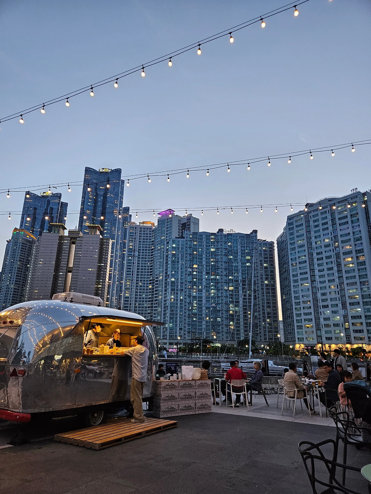 히쯔마부시는 너무 맛있었다. 음식이 나오기 전 마신 맥주 한잔에 벌써 취하는 거 같았다. 배가 고팠던 만큼 음식과 맥주도 꿀맛이었다. 음식을 먹고 다시 호텔 쪽에 있는 동백섬을 걷기로 했다. 동백꽃은 이미 졌지만 녹음이 푸르러진 동백섬은 여전히 좋았다. 배를 조금 꺼뜨리고 <더베이 101>이라는 곳에서 피시 앤 칩스와 맥주를 먹었다. 마음이 앞서서 음식을 많이 시켰는데 이제 늙은 부부는 그 양을 소화하지 못하고 안주는 거의 남겼다. 그곳의 야경은 홍콩 못지않았다. 너무 배가 불러 또 소화시키기 위해 그 일대를 걸어 다녔다. 나중에 호텔에 들어와 보니 2만보를 걸었다. 너무 보람찬 하루였다.