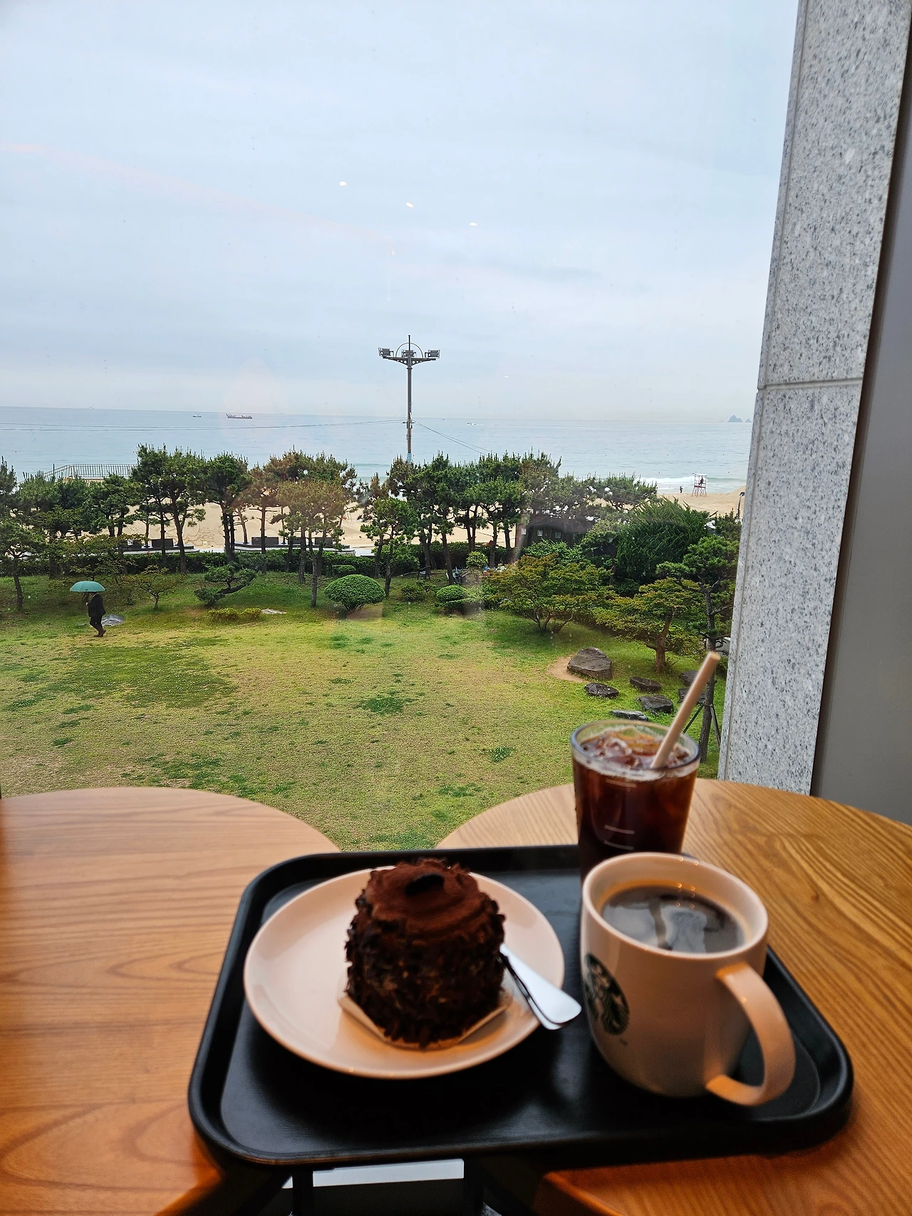 다음날 아침에 늦잠을 자고 체크 아웃을 하고 아침 겸 점심으로 <개미집>으로 갔다. 예전에는 국제시장에 있는 본점에서 낙곱새를 먹었는데 이곳 해운대점도 맛있었다. 아점을 먹고 그랜드조선호텔에 스타벅스 로고가 보이길래 거기로 갔다. 앞에 바다가 보이는 너무 예쁜 스타벅스였다.