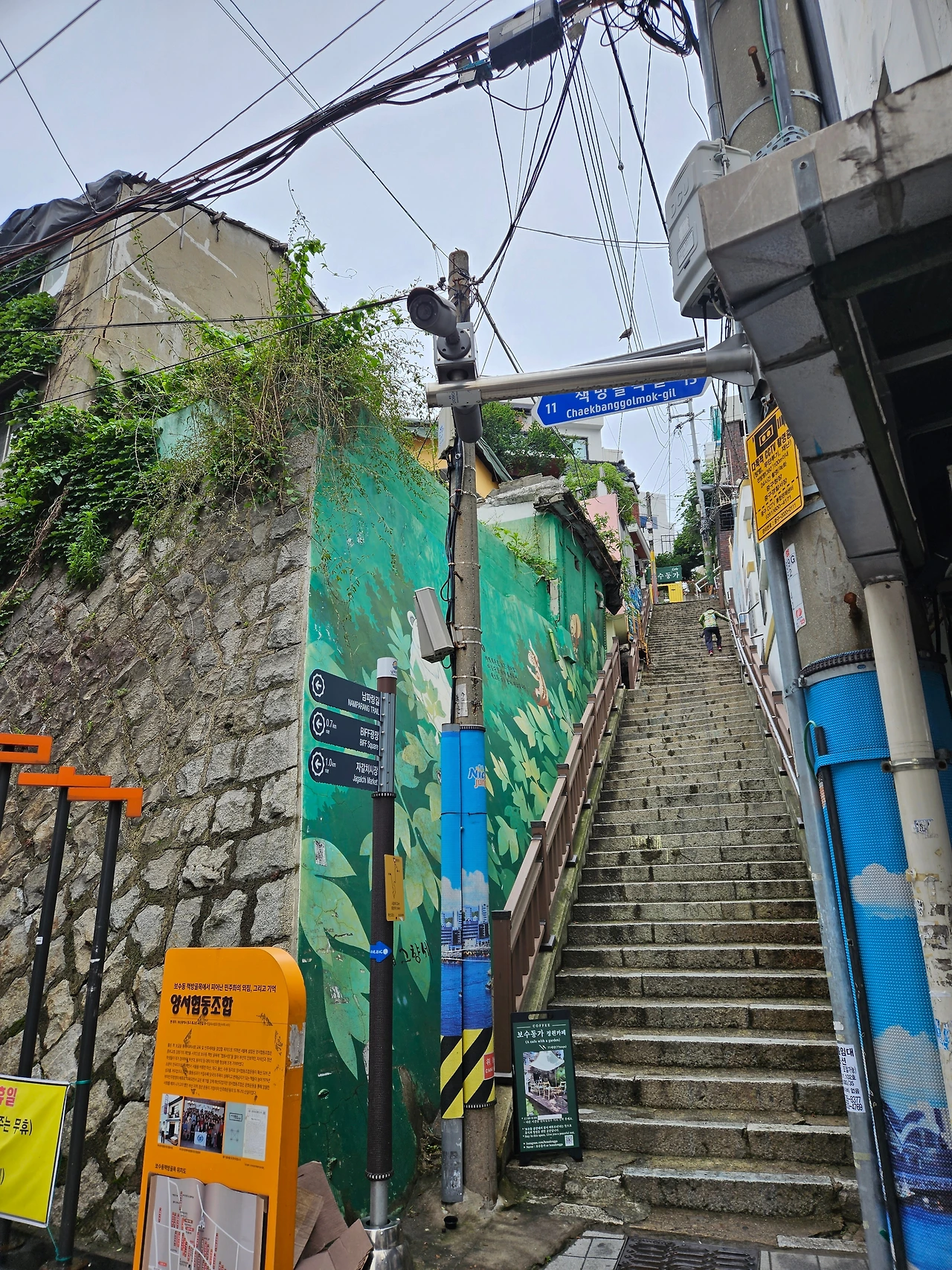 마을은 70년 ~ 80년대에 시간이 멈춘 것 같았다. 어릴 적 기억 속의 희미해진 동네들을 다시 만난 것 같은 느낌이 들었다. 주택에 살 때 옥상에 올라가던 계단이라든지 집안에 있던 작은 마당과 꽃과 나무들의 느낌이 생생하게 다시 살아났다. 늘 꿈에 나와서 그게 꿈이었는지 실존했는지 기억나지 않는 어릴 때 방문했었던 누군가의 집 같은 그런 오래전 마을이었다. 혼자 와서 내 마음에 맞는 것을 찾아 오래도록 멈춰서 쳐다볼 수 있는 여유가 좋았다.