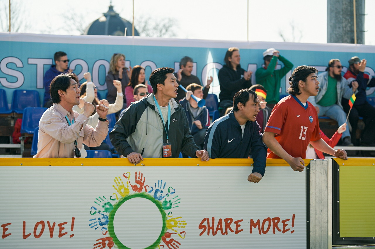 마음만 먹으면 대회 최강자를 상대로 비등비등하게 싸우다가 1골 차이로 우승하는 그림을 만들어낼 수도 있었을 것이고 결정적인 골을 환동 아저씨가 넣는 그림을 만들어낼 수도 있었을 것이다. 하지만 이 영화에서 바라는 단 하나의 클리셰는 '응원'. 열심히 뛰어가는 우리의 등 뒤를 누군가가 응원해주기를 바라는 그 마음뿐이었다. '대한민국'을 연호하는 외국인들에게 소위 말하는 '국뽕'이 느껴지지 않은 것은 그런 이유였을 것이다. 순전히 한국을 응원한다기보단 말도 안되는 경기를 해내고서 단 한 골을 넣더라도 기뻐하는 그들에게 박수를 쳐주고 싶기 때문이다.