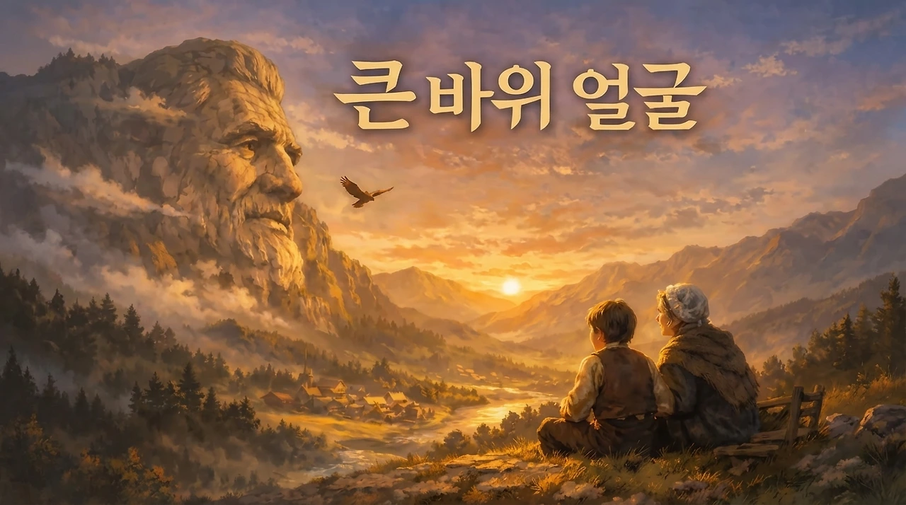 ‘큰 바위 얼굴’은 겉모습과 진짜 가치가 무엇인지 조용히 묻는 이야기입니다. 우리는 종종 화려한 성공이나 강한 힘, 뛰어난 말솜씨에 마음을 빼앗깁니다. 그러나 이 작품은 그런 것들이 반드시 위대함을 의미하지는 않는다고 말합니다. 오히려 진정한 위대함은 눈에 잘 보이지 않는 곳, 사람의 마음과 삶의 태도 속에 담겨 있다고 이야기합니다.