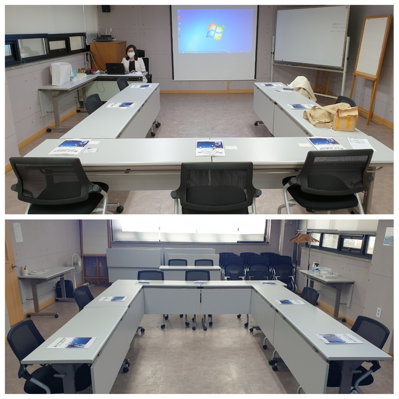 생활방역 기본수칙을 지키느라 오자 마자 비접촉식 체온계로 발열 체크를 하고, 한 자리씩 띄워 앉으며, 쉬는 시간 마다 환기를 하고, 수시로 손소독제를 사용하며, 점심도 도시락을 시켜 각자의 자리에서 먹는 등 건강과 안전을 지키는데 심혈을 기울였답니다~ 특히 체온계와 마스크, 소독제, 스프레이로 구성한 생활방역 안전키트는 큰 관심을 모으며 코로나19가 종식될 때까지 모든 강사님들의 필수품이 될 거란 생각이 들었습니다~