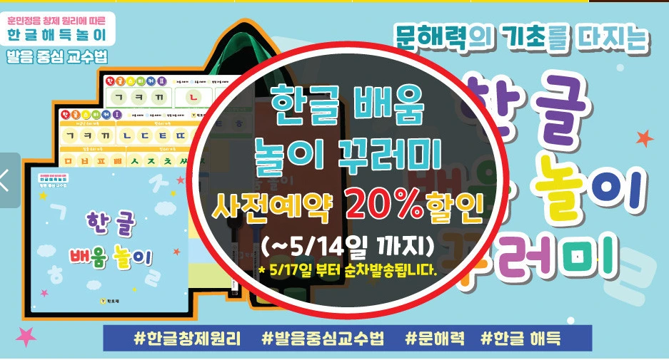 [추천 문해력 한글교구] 학토재에서 한글 배움놀이 꾸러미가 출시되었네요~^^ - 5/14(금)까지 사전예약 20% 할인 이벤트 진행중
