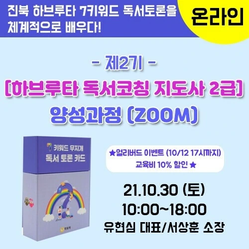 10/30(토) 10시~18시(10/12 17시까지 신청 교육비 할인