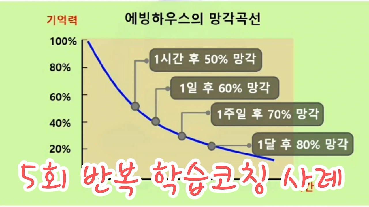 YouTube에서 '줌 ZOOM 망각곡선 이론에 따른 5회 반복 누적복습 학습코칭 사례 -하브루타 활용 메타인지 학습코칭(예습 수업 복습 자기주도 공부습관 만드는 비결)' 보기