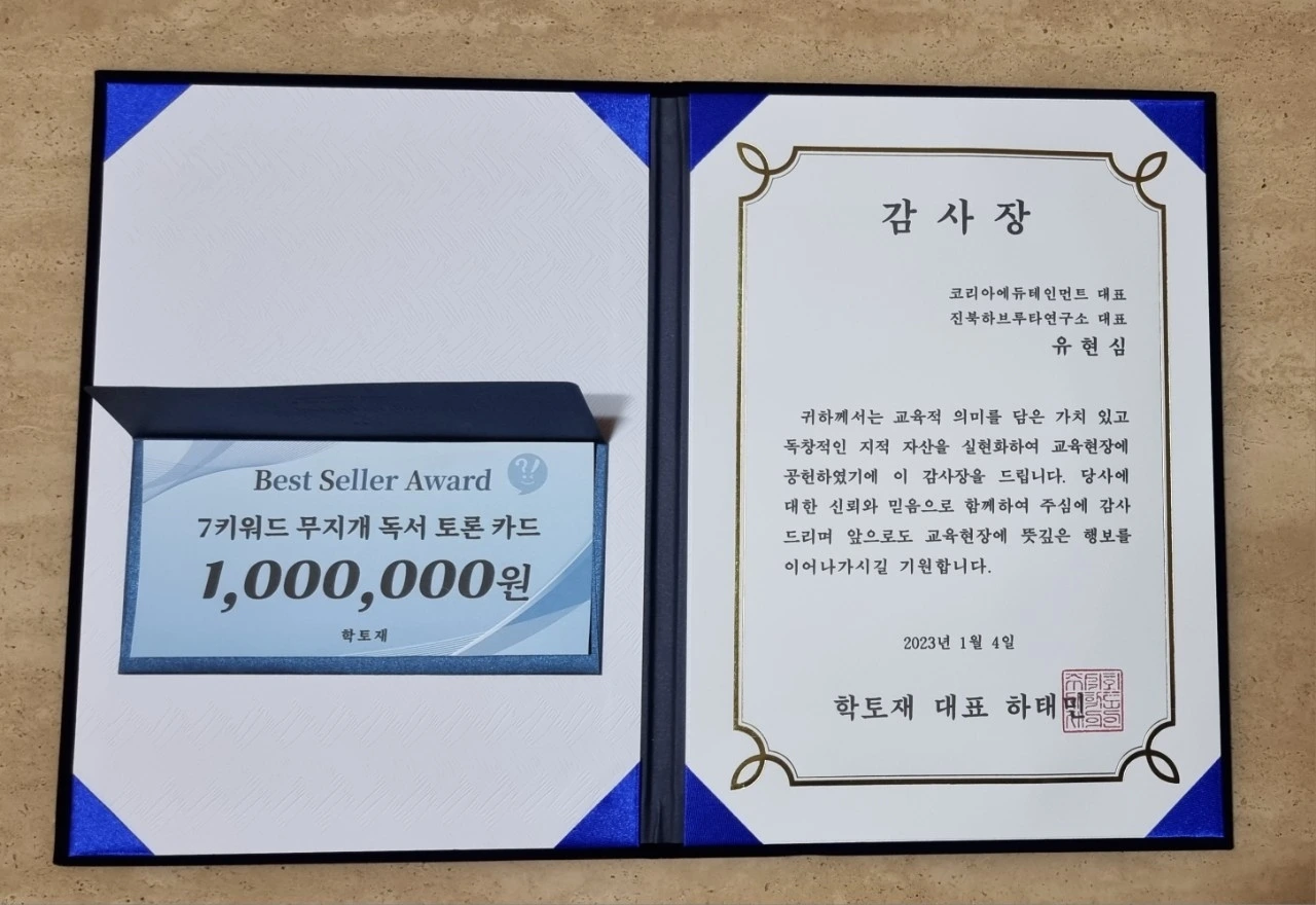 진북 하브루타 토론교구 학토재 베스트셀러상 수상 - 학토재 Best seller Award 10,000