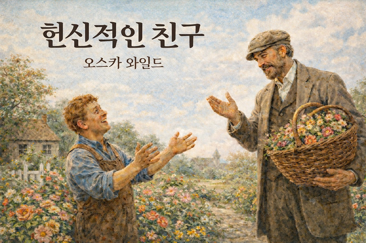 ‘헌신적인 친구’는 겉으로는 따뜻한 우정 이야기처럼 보이지만, 읽을수록 마음 한쪽이 서늘해지는 작품입니다. 오스카 와일드는 이 이야기를 통해 “진짜 우정이란 무엇인가?”라는 질문을 우리에게 던집니다.