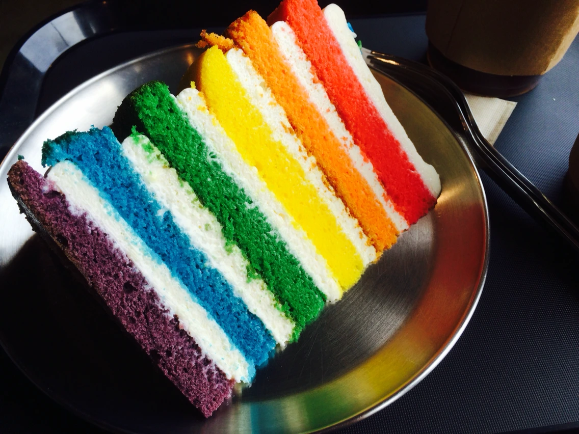 케이크. 빨 주 노 초 파 남 보 일곱가지의