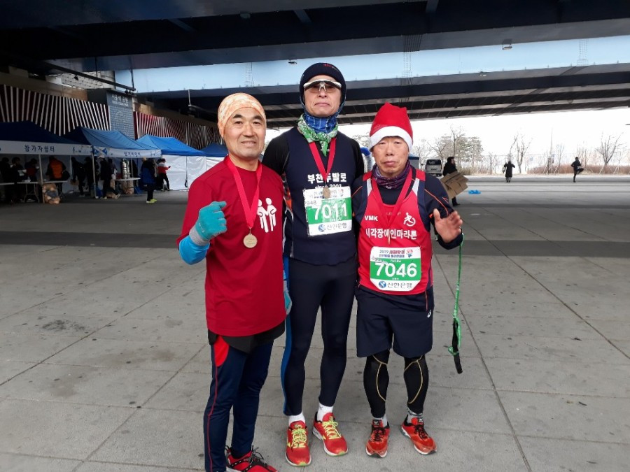 돌아오는 전철, 병석 씨가 말한 '사랑, 그리고 교감'이란 말을 생각해본다. 쓰질 않았을 뿐이지 내 마라톤 모임인 동호회원들 간에도 이런 교감과 배려가 있으리라. 그러고 보니 내 옆 자리에서 두발로마라톤 회장님이 "몸은 괜찮으냐"고 걱정을 한다. 먼저 풀코스를 뛰고 들어와 언 손을 비비며 나를 기다렸다. 또 송내역 동태집에는 하프를 뛴 두발로마라톤동호회원들이 우리를 기다리고 있었다.
