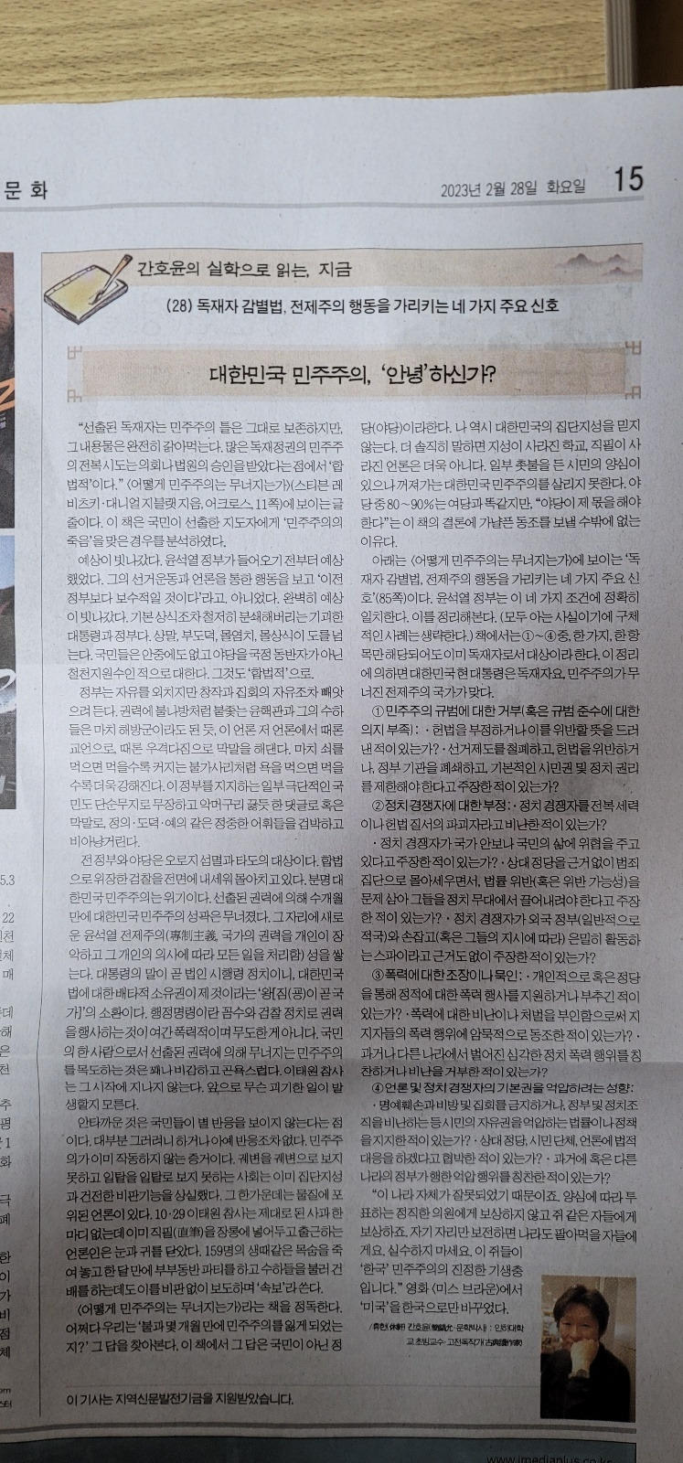 “선출된 독재자는 민주주의 틀은 그대로 보존하지만, 그 내용물은 완전히 갉아먹는다. 많은 독재정권의 민주주의 전복 시도는 의회나 법원의 승인을 받았다는 점에서 '합법적'이다.” <어떻게 민주주의는 무너지는가>(스티븐 레비츠키·대니얼 지블랫 지음, 어크로스, 11쪽)에 보이는 글줄이다. 이 책은 국민이 선출한 지도자에게 '민주주의의 죽음'을 맞은 경우를 분석하였다.