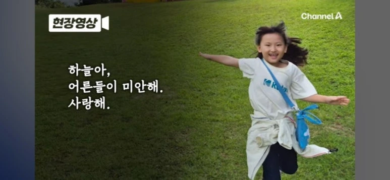 한 번도 김하늘이를 보지 못한 나지만 "하늘아! 어른들이 미안해! 사랑해!"라는 문구를 우리 모두 마음에 새겼으면 좋겠습니다. 모든 어린아이들을 내 자식처럼 내 가족처럼 한 번 더 보아줍시다. 그리고 기도해 줍시다. 하늘이 아빠의 말처럼 "단 10초만이라도" 교사들은 더욱 더 ---. 아픈 마음으로 하늘이 아빠의 인터뷰 영상과 하늘이의 사진을 캡쳐해 올려 놓습니다.