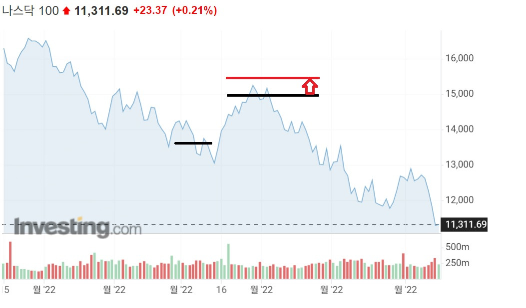 처음 세운 시나리오를 믿었더라면 20%의 현금비중이 30%가 되어, 다음 기회를 노려볼 수 있었다. 아마도 특정 시점부터 분할 매수를 시작해서 전체적인 평균 단가를 낮추거나 나스닥이 고점에서 30% 떨어진 지금 같은 시점에 뭉텅이가 들어갔을 수도 있었을 것이다. 어쨌든 지금보다는 훨씬 나은 상황에서 주도적인 매매를 이어갈 수 있었음은 분명하다.