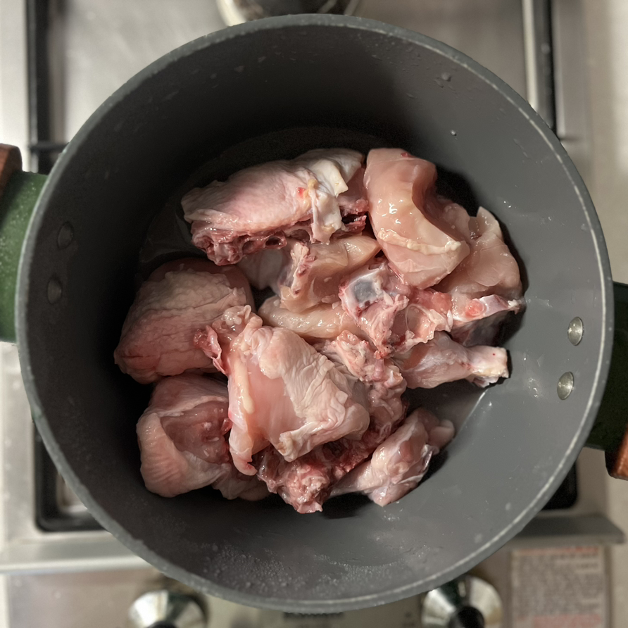 한 번 끓여낸 닭을 다시 냄비에 담고 물을 800ml 붓는다.