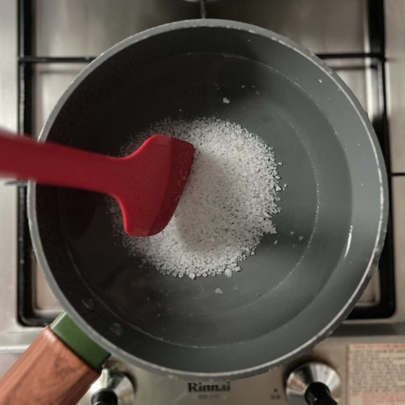 물 1,000ml에 소금 다섯 숟가락을 넣고 끓인다.