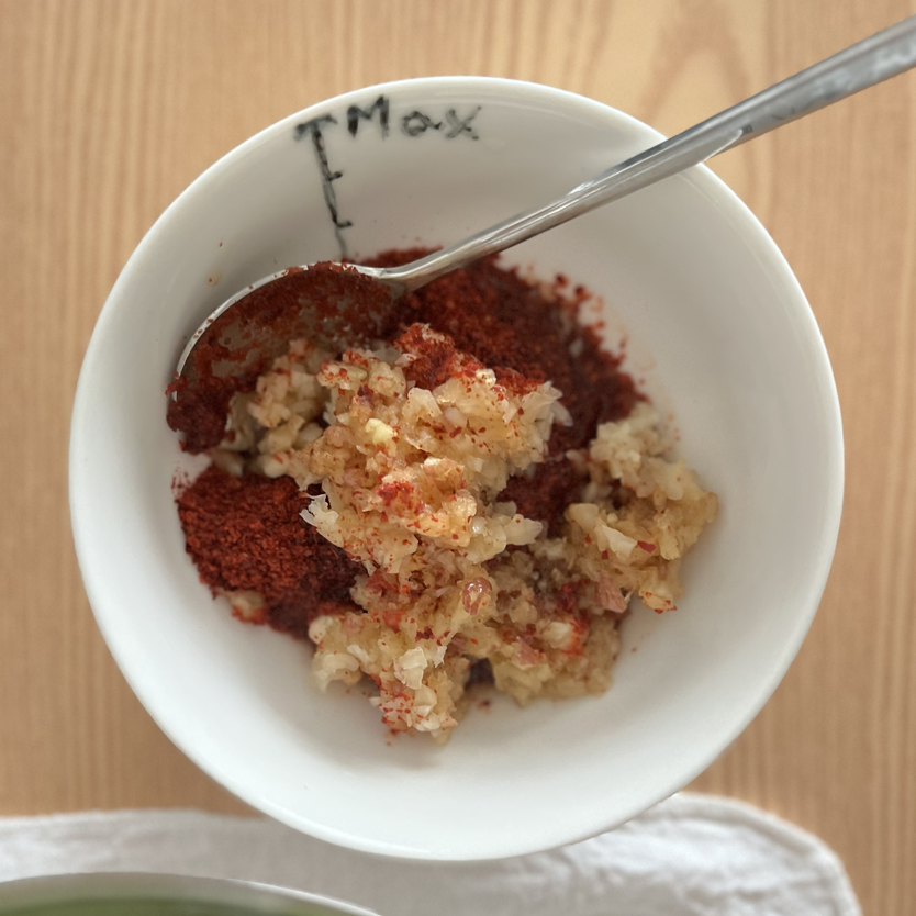 오이를 절이는 동안 양념장을 만든다.