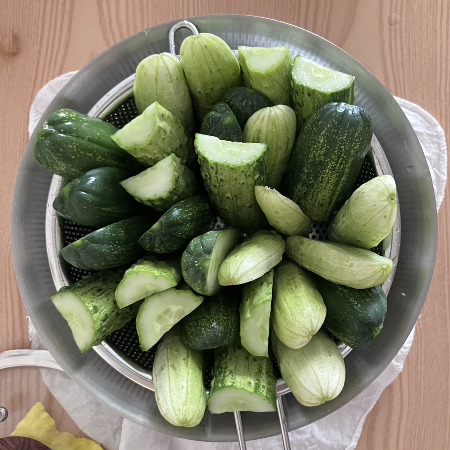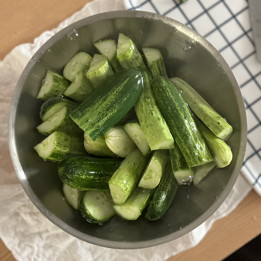 40분이 지났으면, 오이를 소금물에서 건진다.