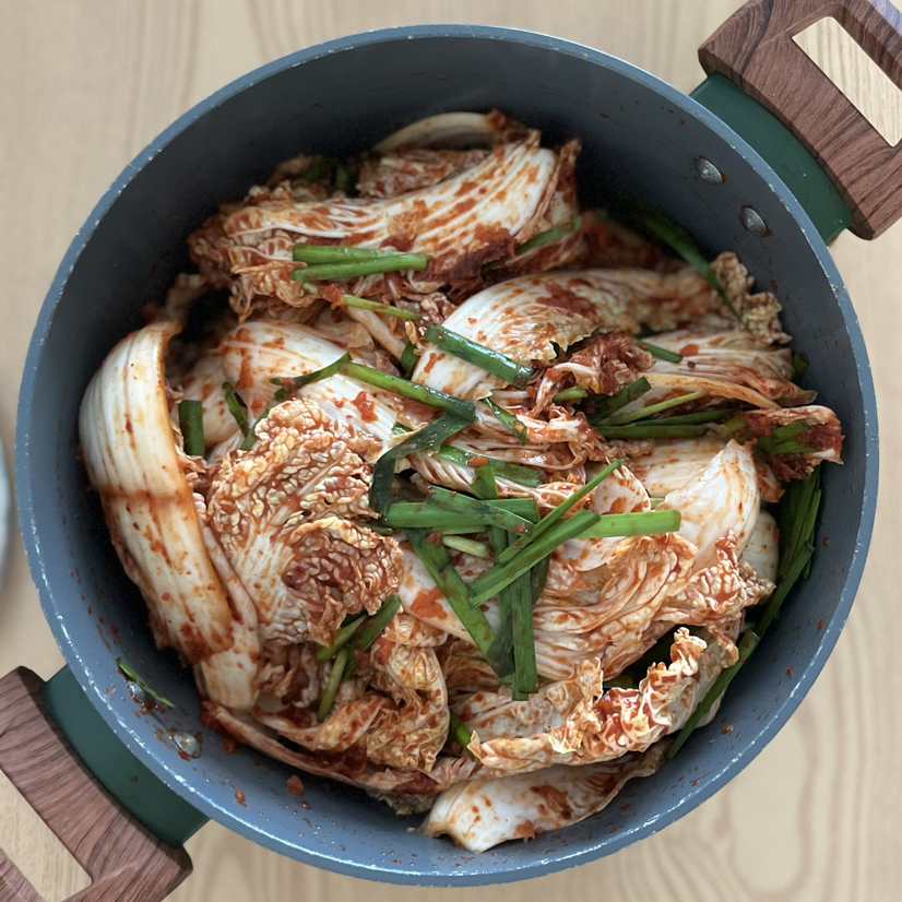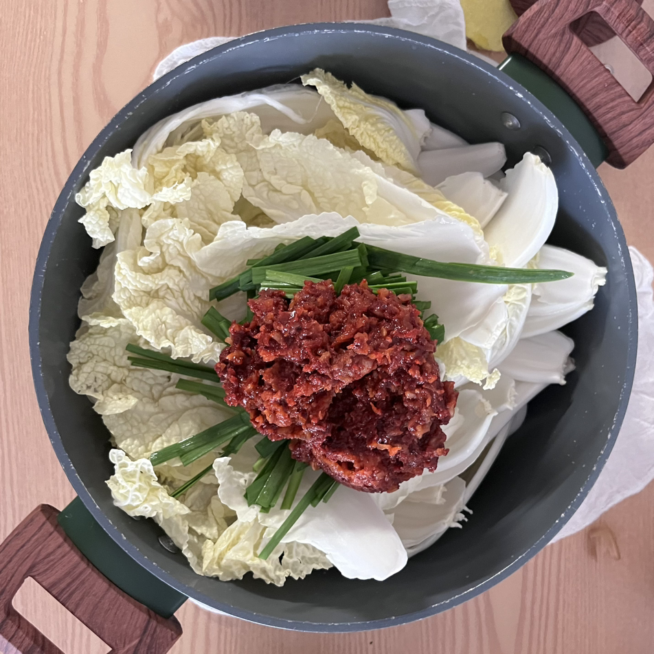 양념을 똑같이 만들어서 알배추 두 포기를 버무렸다.
