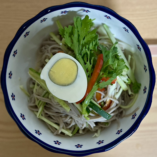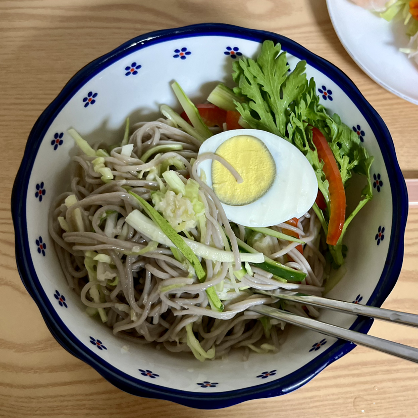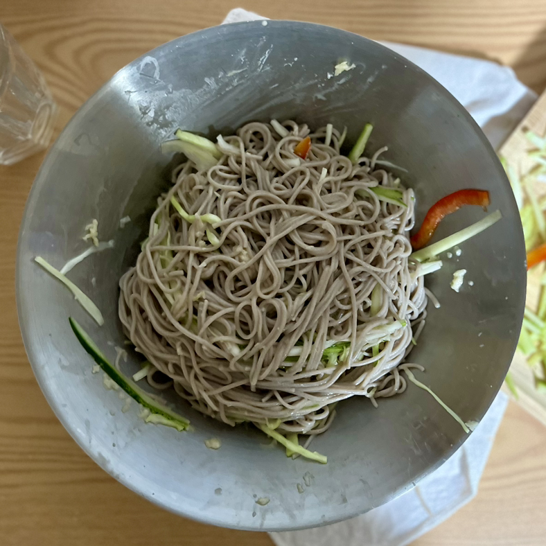 이런 날은 고소한 땅콩버터와 채소를 듬뿍 넣고 비빈 메밀국수에 얼음 몇 조각 올려서 먹어야 한다.