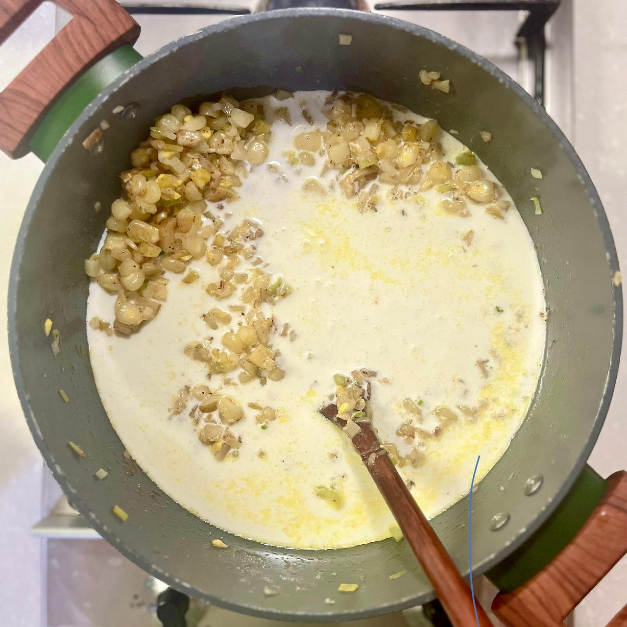 반나절을 옥수수 생각만 하다가 마침 냉장고 안에 얼마 전 바나나 푸딩을 만들고 남은 생크림까지 발견해서 모두 넣고 수프를 끓였다.