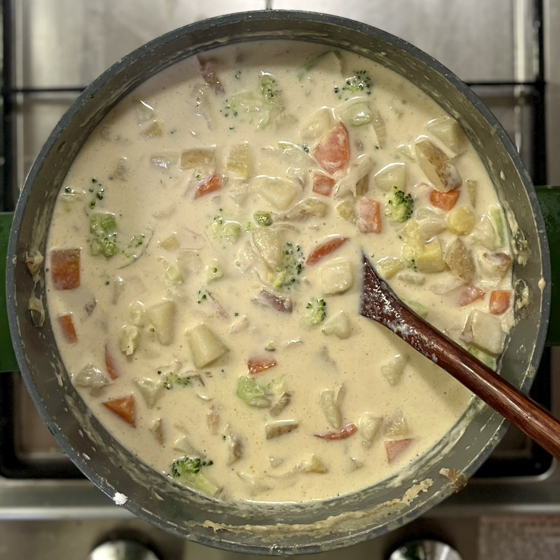이건 당근과 브로컬리를 넣은 감자 크림 수프.