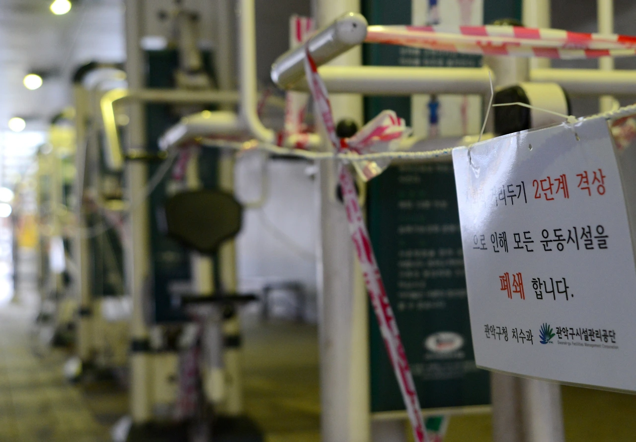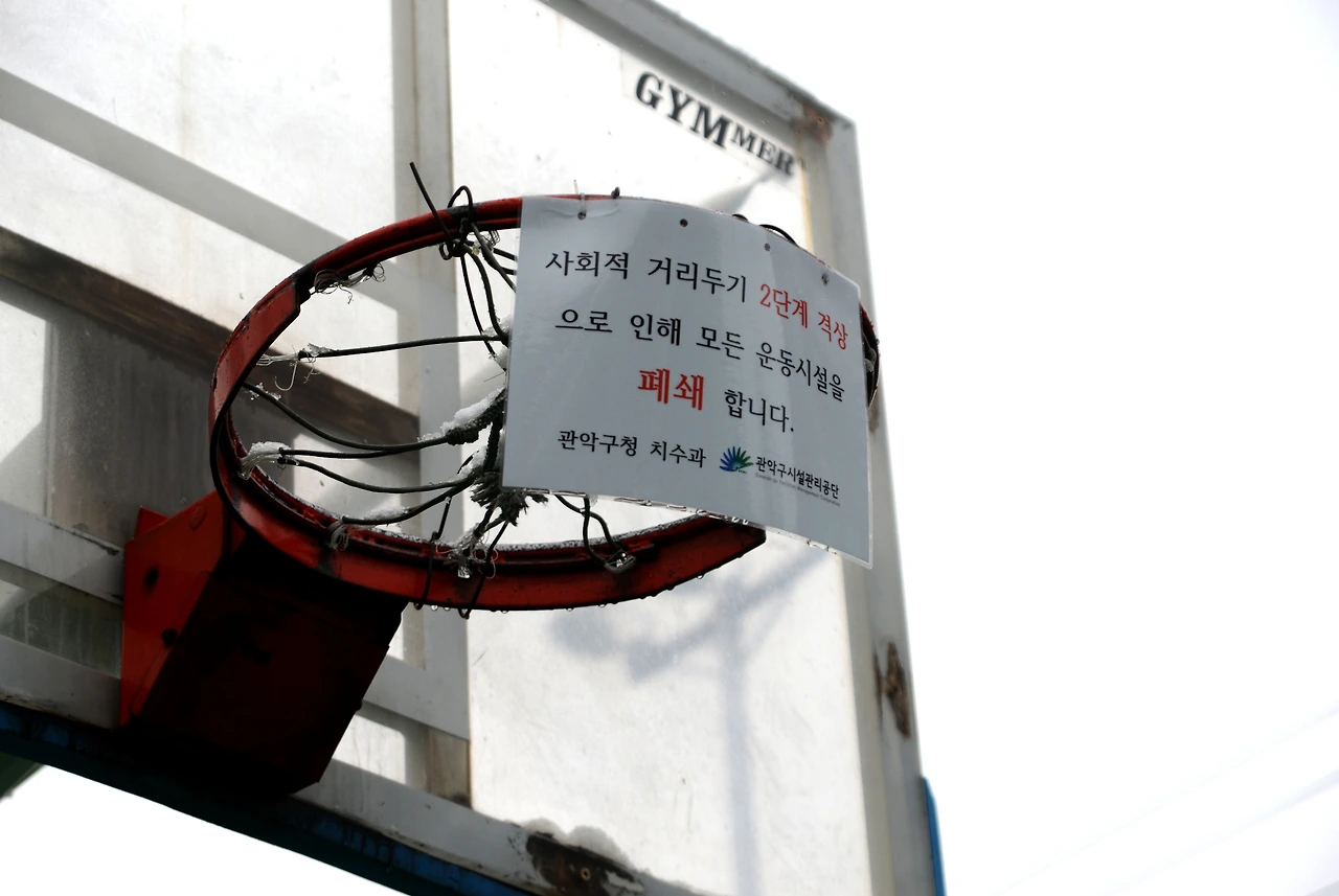 사회적 거리두기 2단계 격상으로 폐쇄된 운동기구.