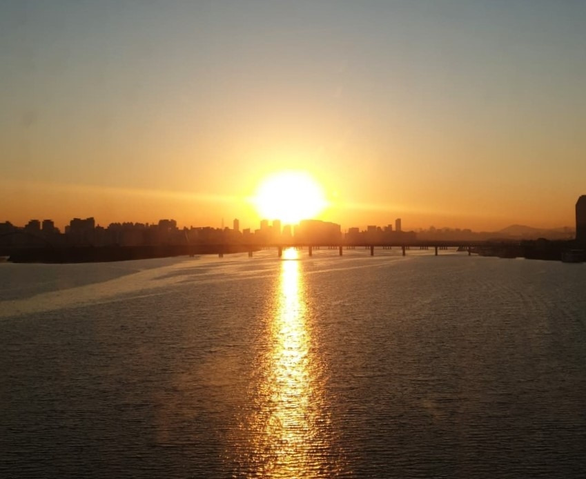 출근길 2호선에서 본 일출.